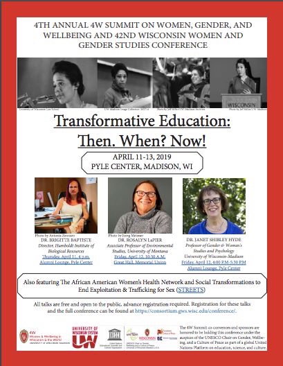 4W also hosts a robust series of events throughout the year. We have active 4W circles of faculty, graduate students, and undergraduate students. In addition to co-hosting the 4W summit and Gender and Women Studies Conference, we also host an International Women’s Day event, and a range of research to practice fora. We are proud that a UNESCO Chair on Gender Wellbeing and a Culture of Peace was awarded to UW-Madison!